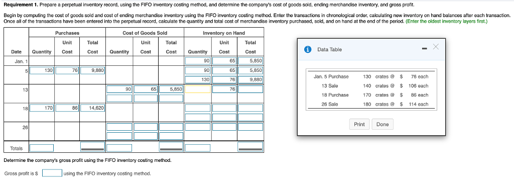 Multiply 1 - expected gross profit by sales during the period to arrive at the estimated cost of goods sold. Cost of goods sold is calculated by taking beginning stock adding all inventory purchases for the monetary interval in question after which subtracting the ending stock. Prepare a perpetual inventory record for the merchandise inventory using the FIFO inventory costing method Start by entering the beginning inventory balances.
